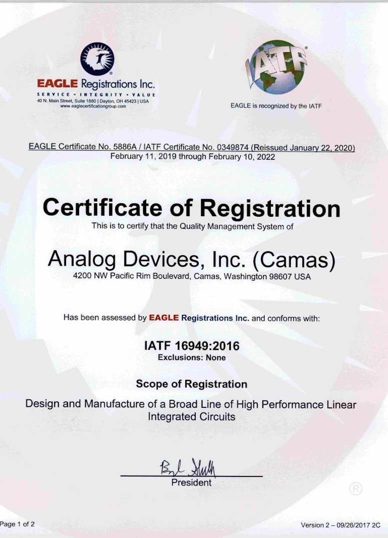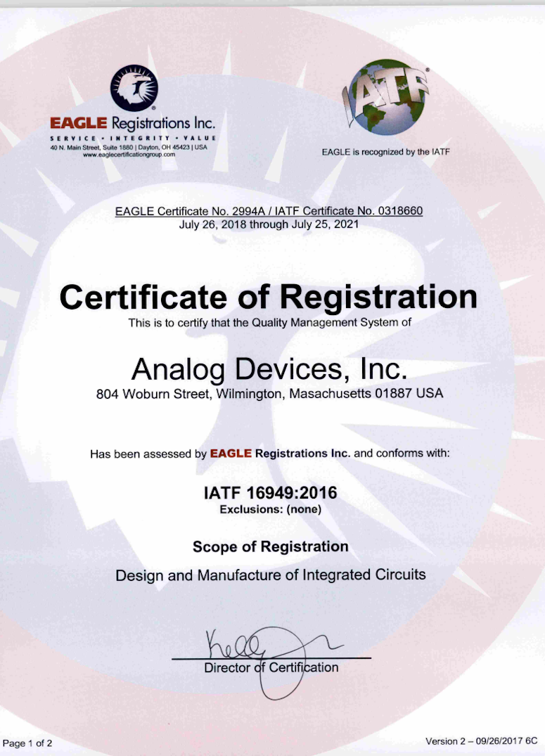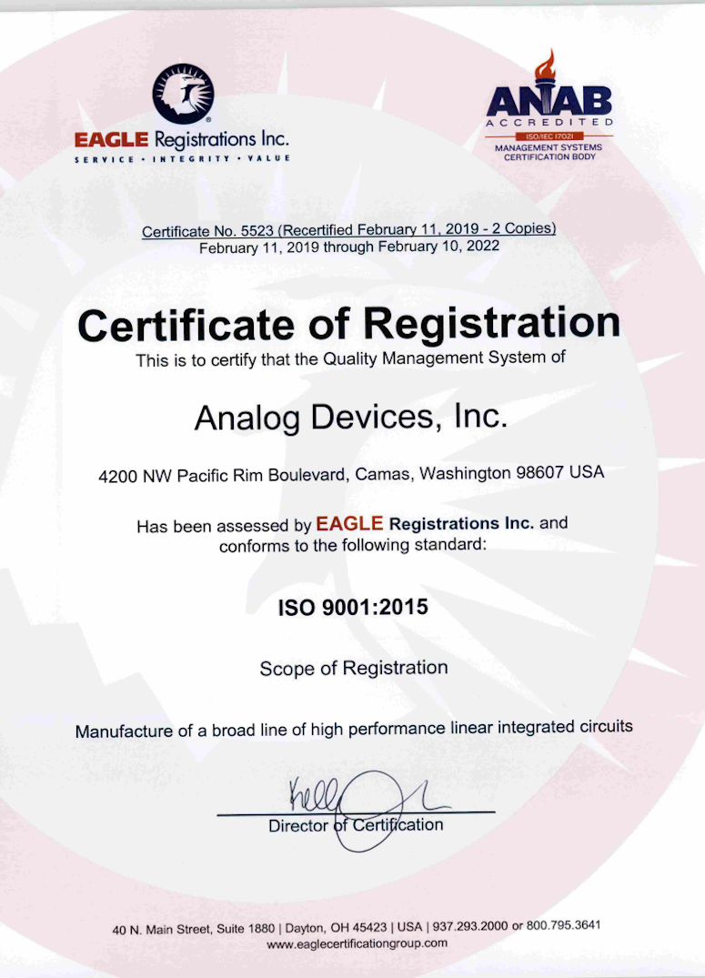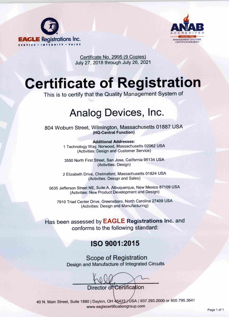В настоящий момент компания Analog Devices является крупным мировым производителем инновационных электронных компонентов для обработки аналогового и смешанного широкополосного сигнала со специализацией на высокой точности и скорости его обработки.
