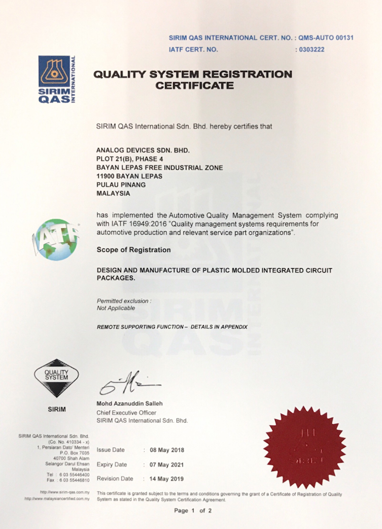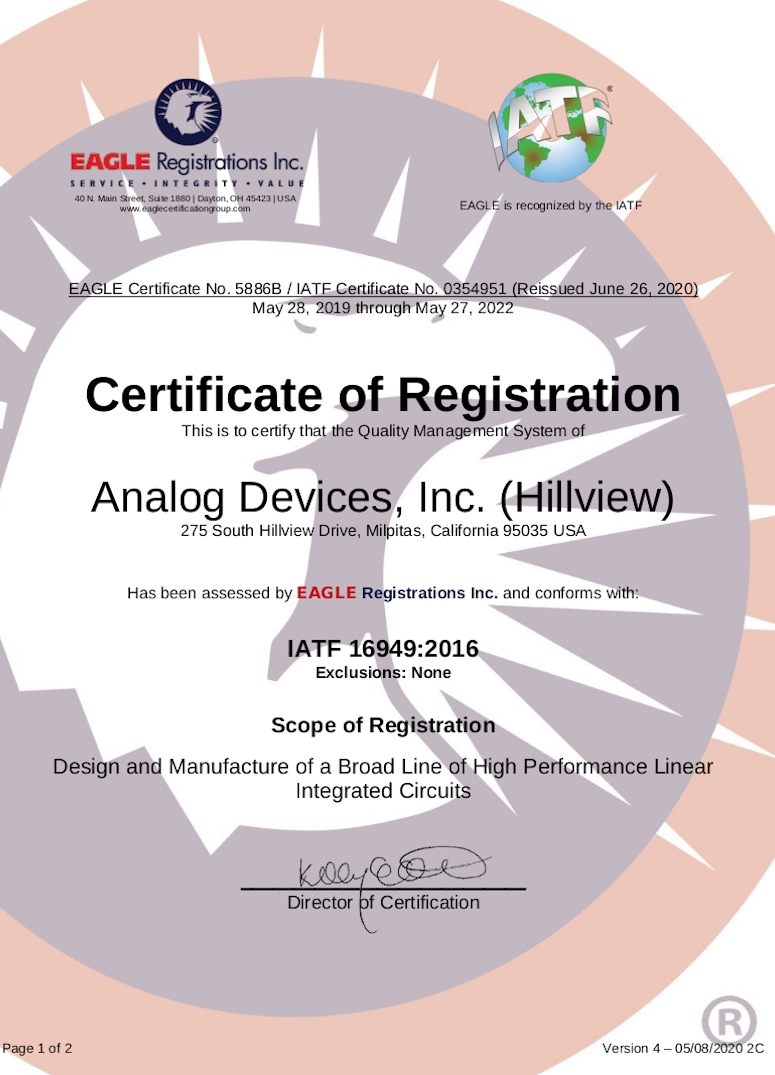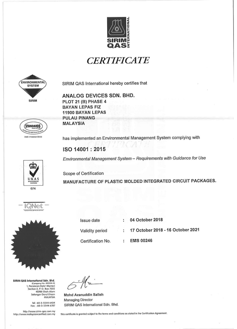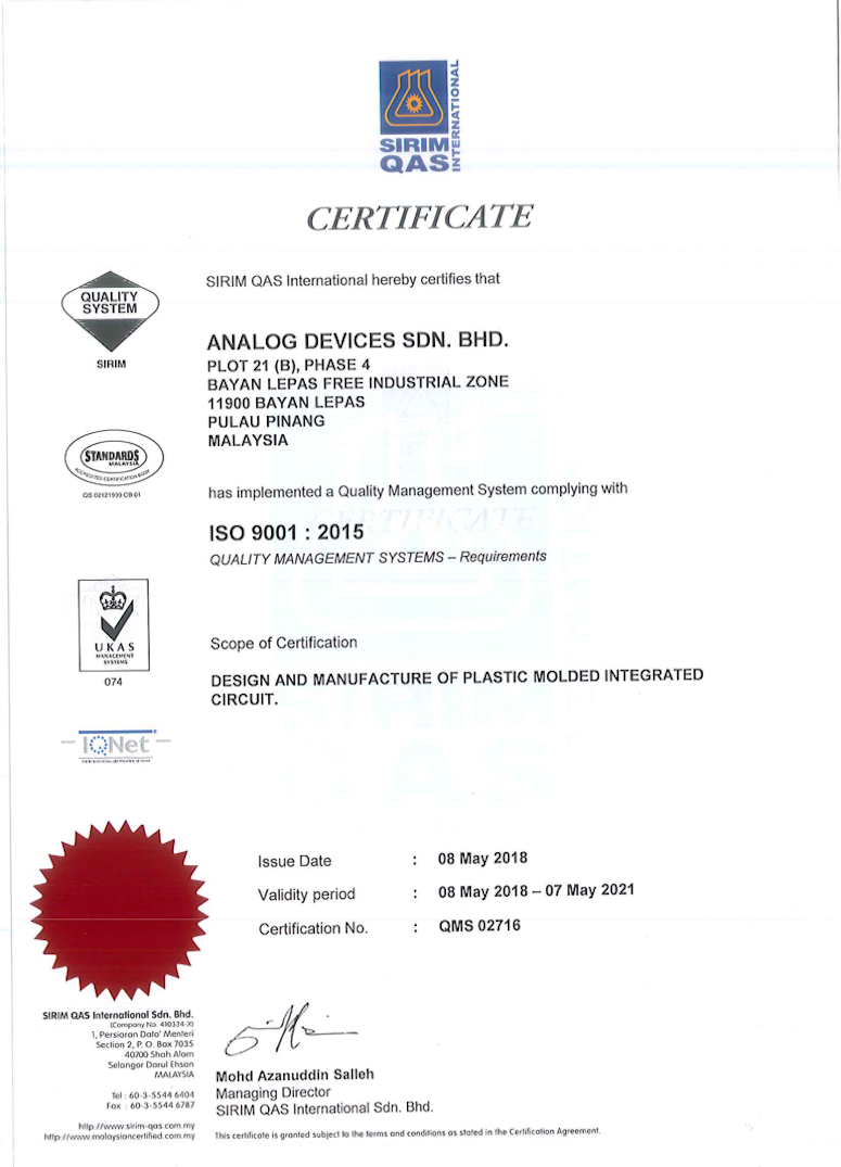 В настоящий момент компания Analog Devices является крупным мировым производителем инновационных электронных компонентов для обработки аналогового и смешанного широкополосного сигнала со специализацией на высокой точности и скорости его обработки.