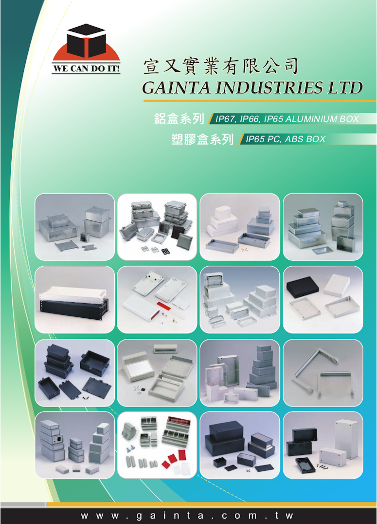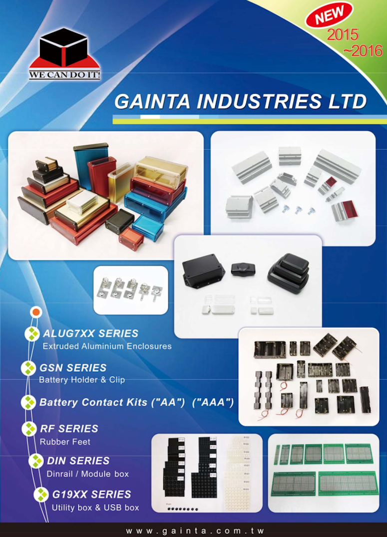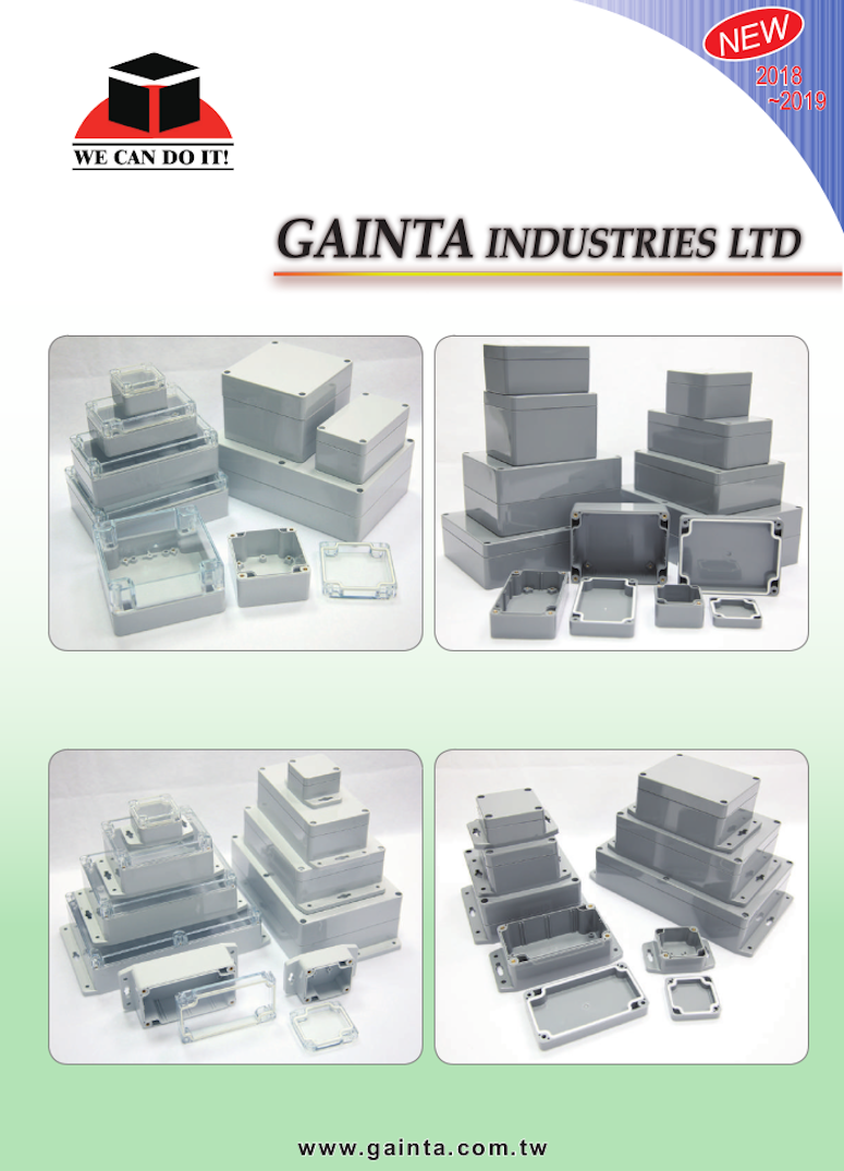 Gainta - крупнейшая торговая марка на рынке электромонтажных корпусов в Азии. Впервые продукция Gainta для российских потребителей была представлена в 1995 году. На сегодняшний день, под торговой маркой Gainta выпускается широкий спектр корпусов для различного применения в электрической и электронной технике, производятся линейки стандартных корпусов, а также заказные модели по спецификации заказчика. На текущий момент модельный ряд корпусов Gainta составляет более 700 моделей из поликарбоната, ABS-пластика, стекловолокна и алюминия.