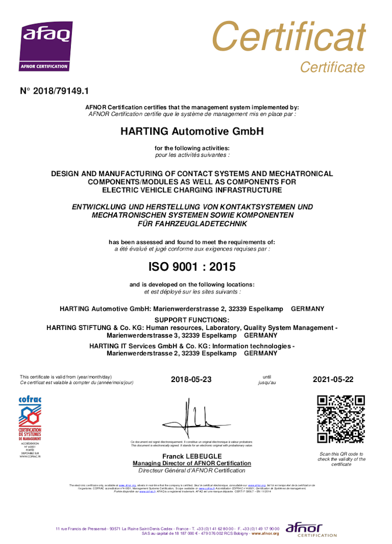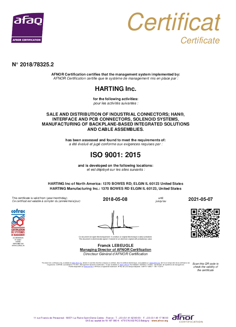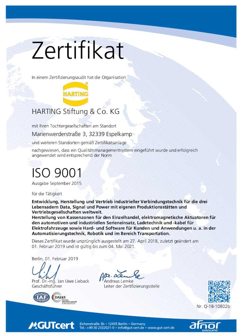 Сегодня во всем мире в фирме ХАРТИНГ работает более 3200 человек, занятых в 40 дочерних компаниях и 27 представительствах. Продукция фирмы ХАРТИНГ проектируется и производится, используя новейшее автоматизированное оборудование, от систем CAD в отделе исследований и до станков-роботов сборочных линий. Организация контроля качества базируются на стандарте DIN EN ISO 9001. Компания HARTING устанавливает стандарты во многих областях применения и удовлетворяет индивидуальные требования клиентов, гибко реагируя на каждое конкретное решение.