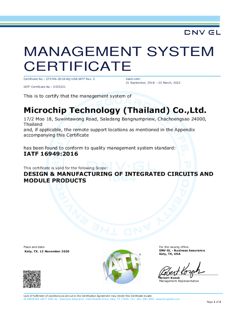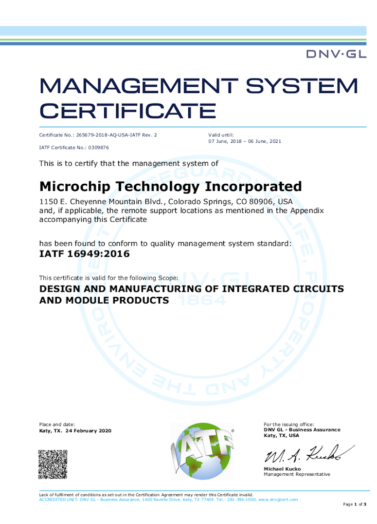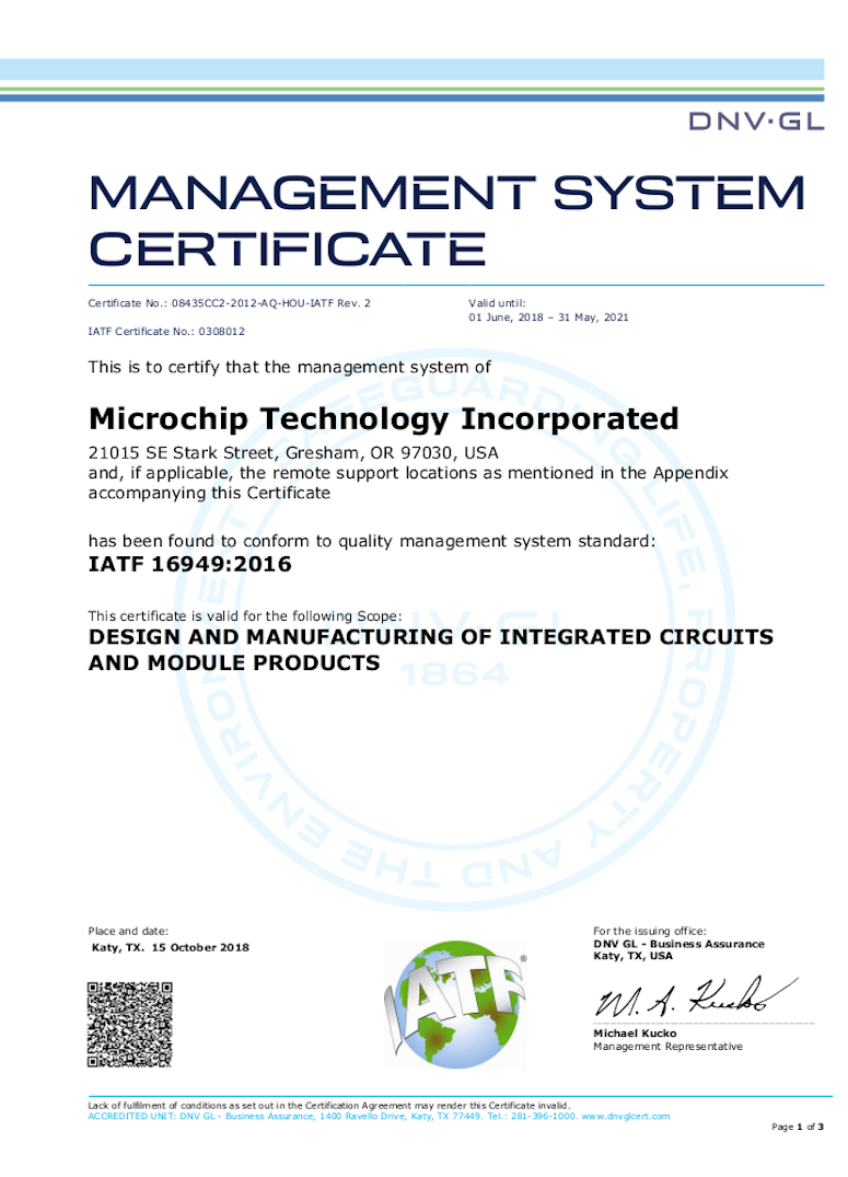 Продукция Microchip обладает высоким уровнем взаимозаменяемости и расширяемости — клиенты могут легко использовать новые приборы, не изменяя исходные коды. Система качества Microchip основана на элементах ISO/TS-16949 — системы качества, сертифицированной крупнейшими производителями автомобилей.
