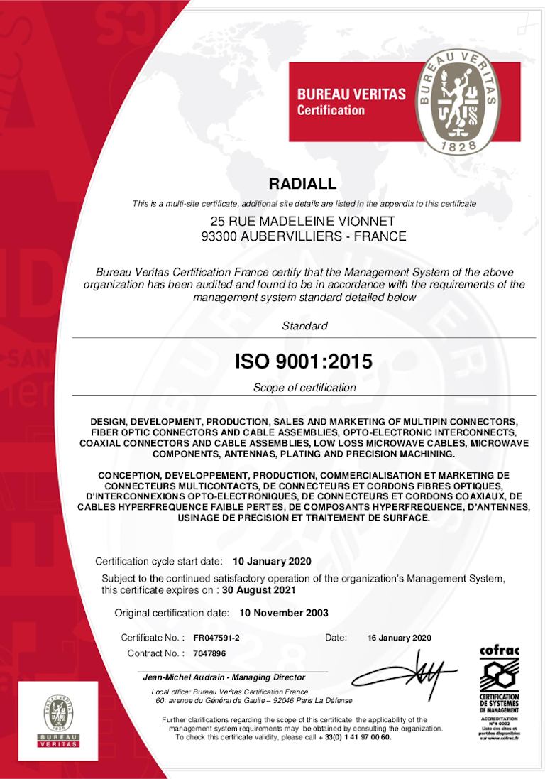 Компания Radiall была основана Ивоном и Люсьеном Гаттаз в 1952 году, ее штаб-квартира находится в Париже, Франция.